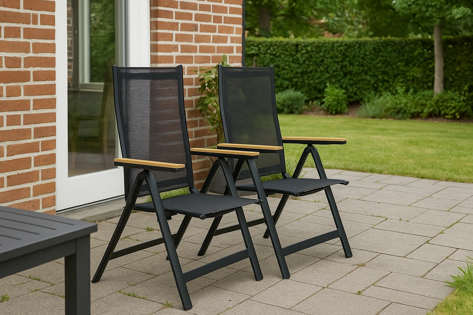 Utematgrupp – Las Vegas & Svea | Svart Aluminium | 8 positionsstolar