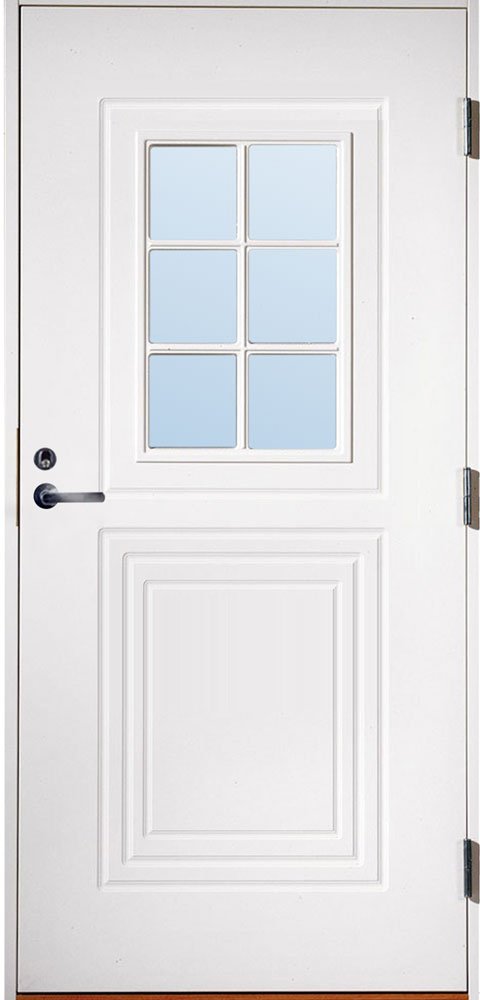 Det fina rektangulära fönstret i dörren är i välisolerande 2-glaskassett med argonfyllning mellan glasrutorna.